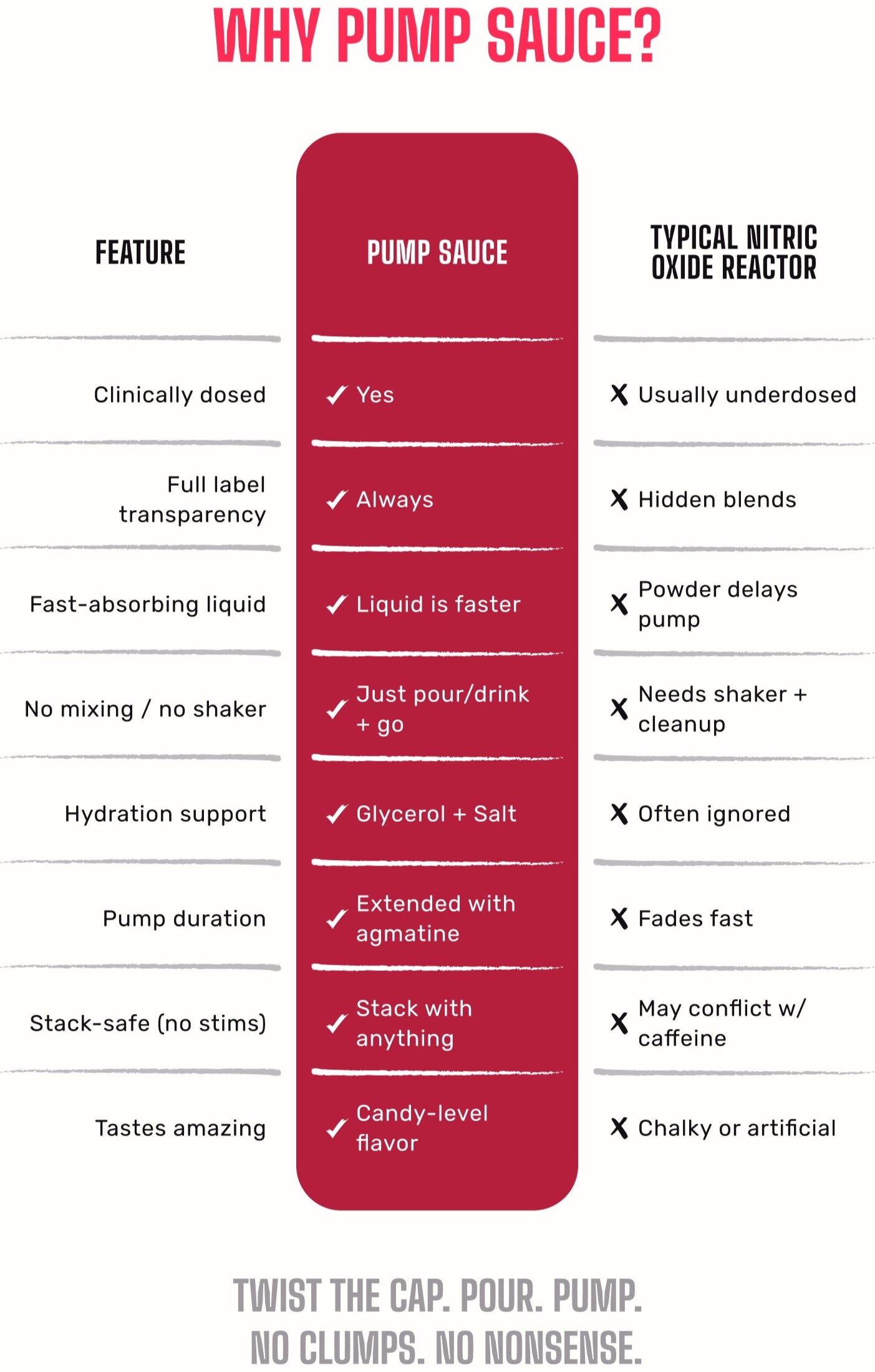 PUMP SAUCE™️ is water soluble and can be mixed with any supplement (including pre-workouts or energy drinks!)